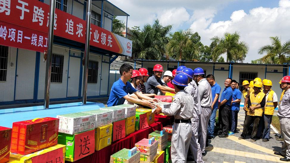 北控集團(tuán)領(lǐng)導(dǎo)到橫嶺項(xiàng)目為一線員工送清涼 5月21日上午,北控橫嶺項(xiàng)目部項(xiàng)目經(jīng)理梁振澤、橫嶺廠廠長萬巍一行到橫嶺污水處理廠一期提標(biāo)改造工程項(xiàng)目部為一線員工送清涼,揭陽項(xiàng)目經(jīng)理凌利云、黨支部書記