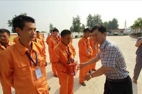 7月26日,集團(tuán)公司工會(huì)主席王輝州一行在市政公司工會(huì)主席吳衛(wèi)東的陪同下,來到公司沈陽區(qū)域項(xiàng)目部開展“夏送清涼”活動(dòng),為高溫下工作的廣大職工送上降溫防暑物品并給予親切慰問,確保職工平安度夏。